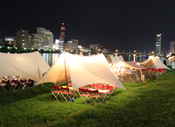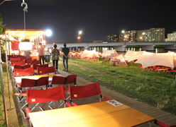 ウッドデッキや芝生テントのお席など約100席の多様なお席が利用可能